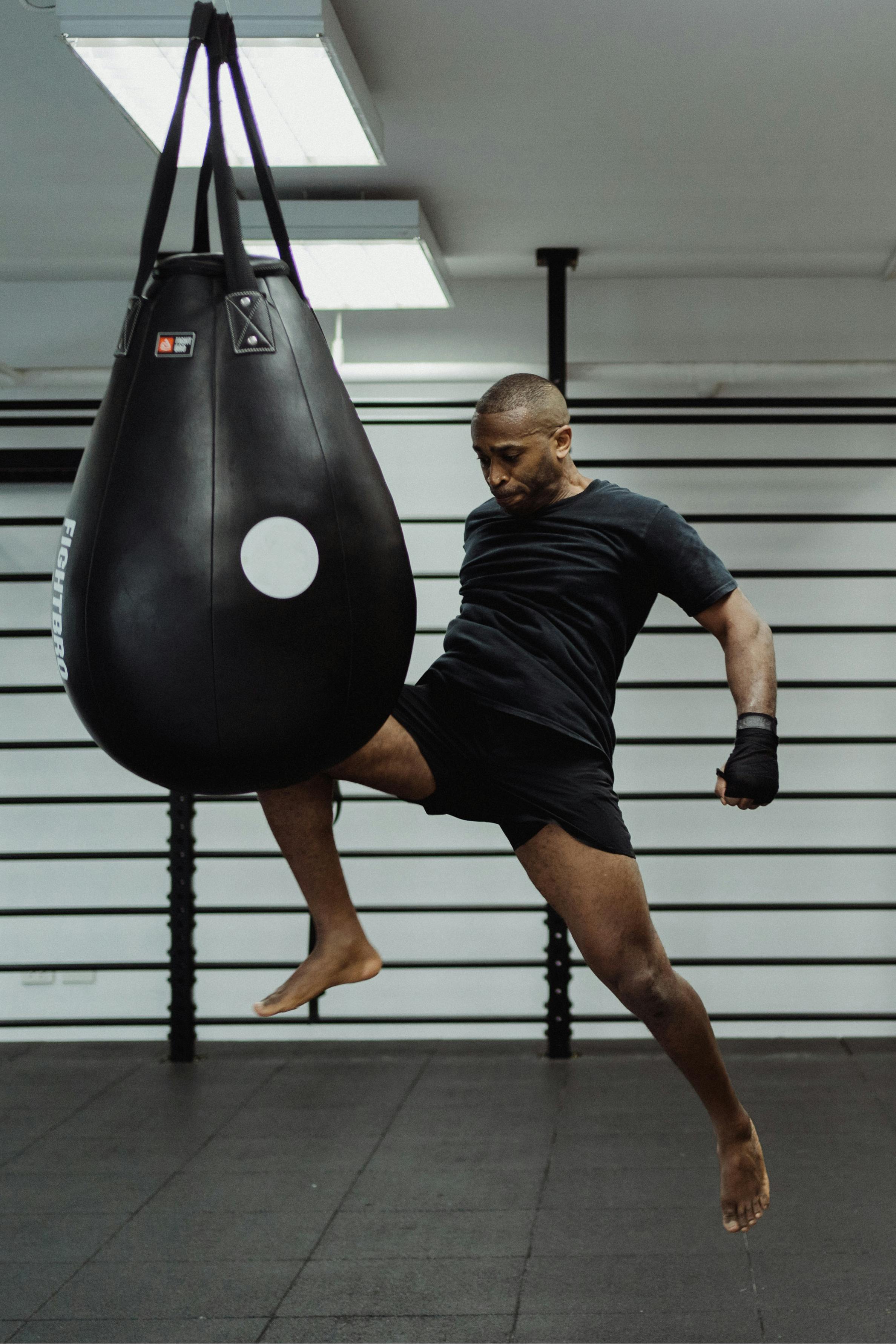 Boxeur frappant un sac